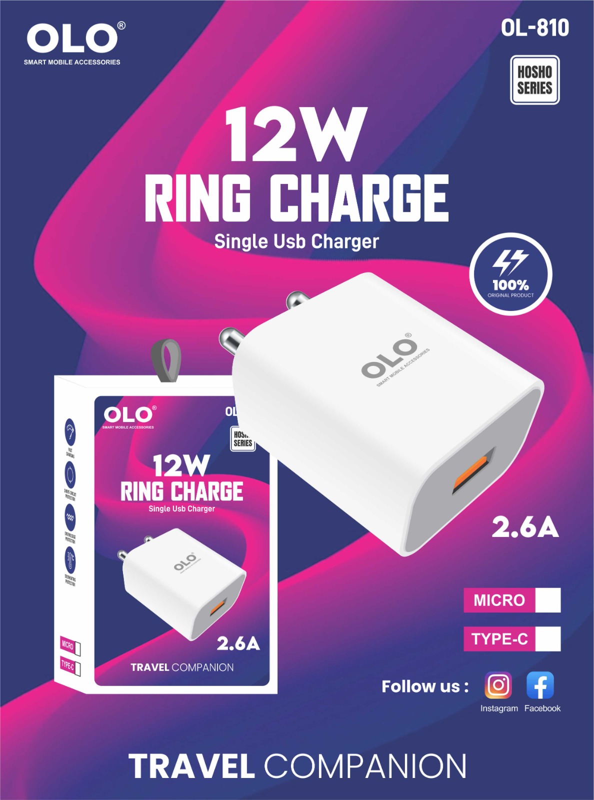 OLO OL-810,12W CHARGER TYPE-MICRO Original price was: ₹399.00.Current price is: ₹249.00.