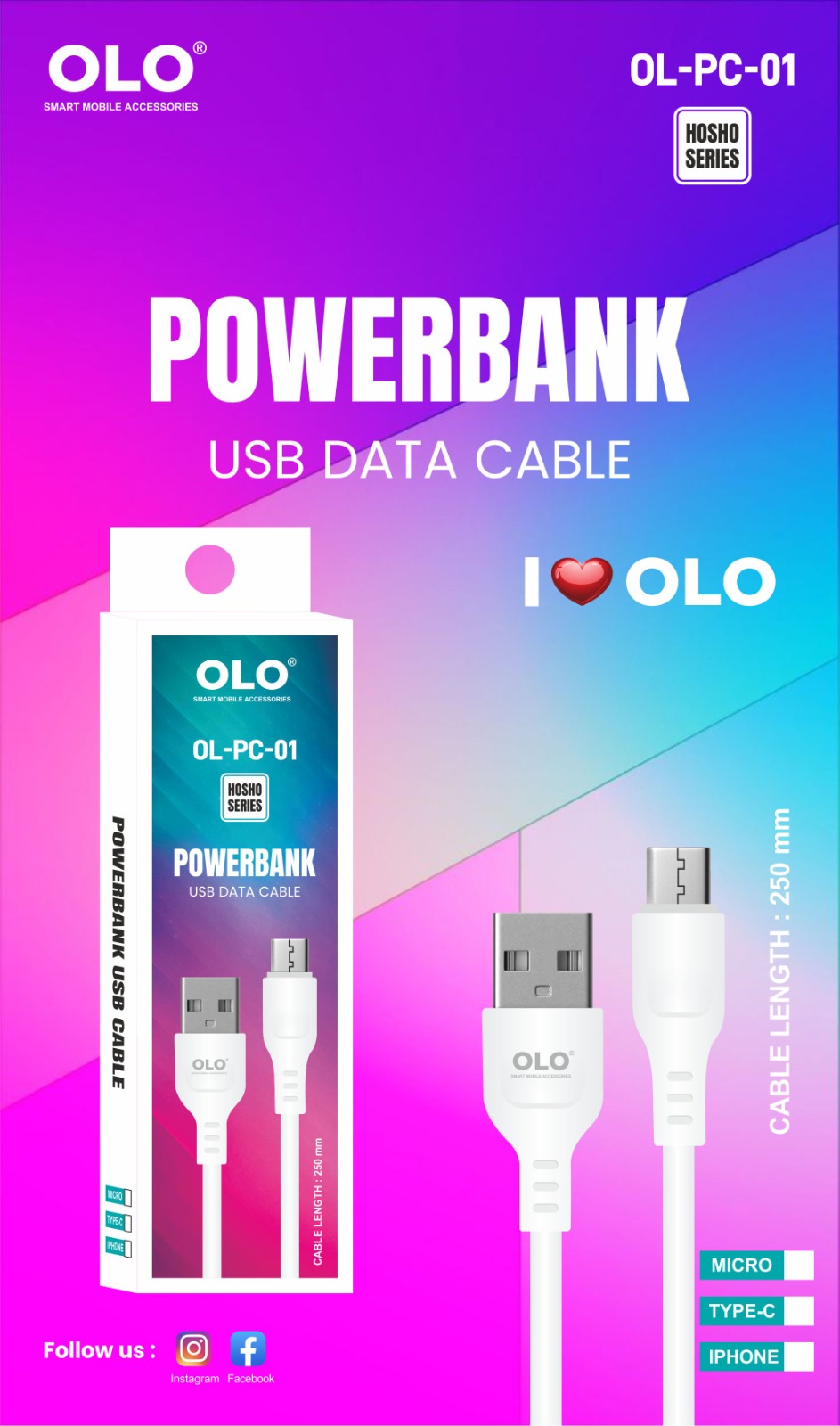 The OLO OL-PC01 Type-C Cable is a compact, durable, and efficient charging solution, specially designed for power banks and portable devices. Built for convenience, it offers fast charging in a lightweight, travel-friendly design.